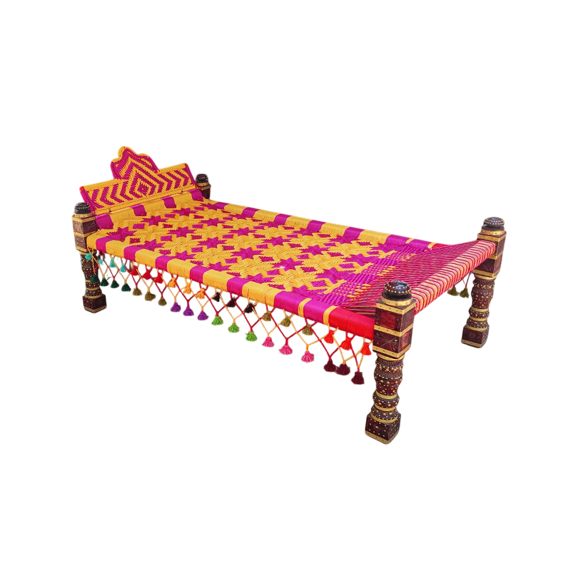 Each khatla is carefully made by skilled artisans using strong wooden frames and traditional weaving techniques. The simple yet sturdy design makes it perfect for everyday use – whether indoors or outdoors. Its lightweight structure also allows for easy movement and placement anywhere in your home.